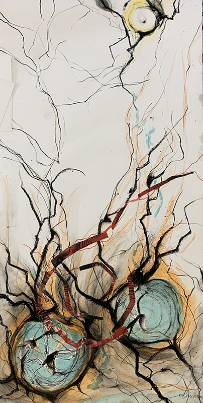 Ce travail fait référence au régime de l’eau devenu très préoccupant. Pourtant cet élément vital est maltraité. La toxicité de l’anthropocène pour son milieu est aujourd’hui un serpent de mer qu’il reste urgent d’aborder, ce que j’ai commencé depuis les années 90 (visuel-sonore Foule-eau-up 1993)