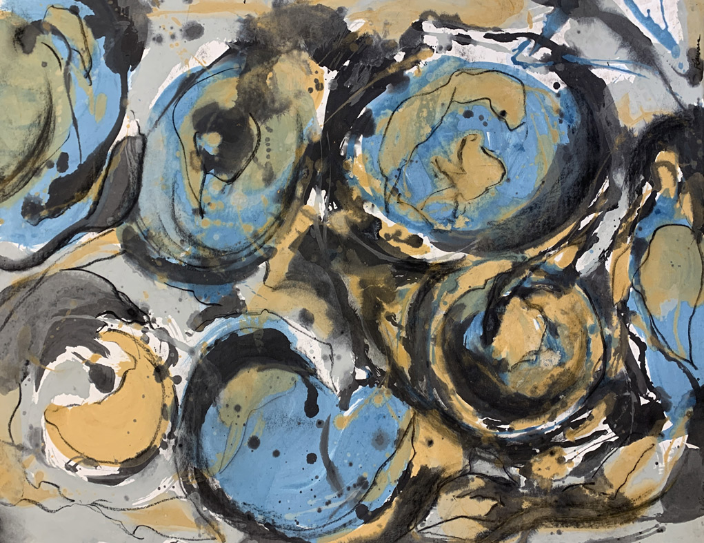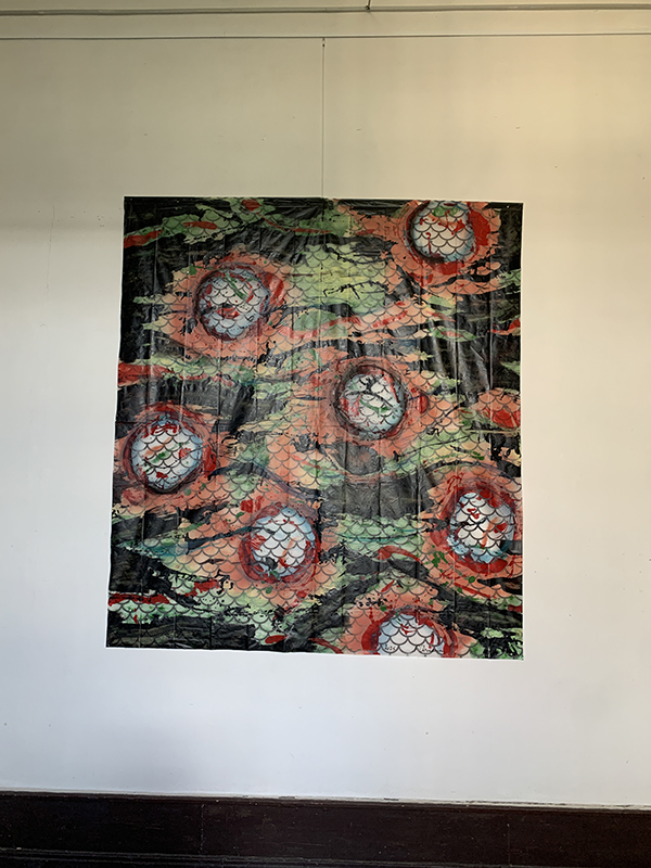 L’exposition présente des peintures sur plastique, nylon, des dessins, collages louant la diversité des structures sous-marines et leur libre interprétation par l’artiste.