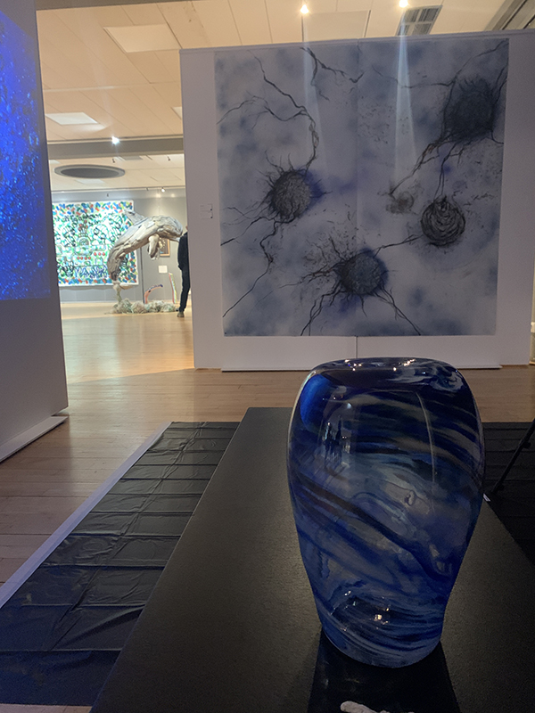 L’exposition présente des peintures sur plastique, nylon, des dessins, collages louant la diversité des structures sous-marines et leur libre interprétation par l’artiste.
